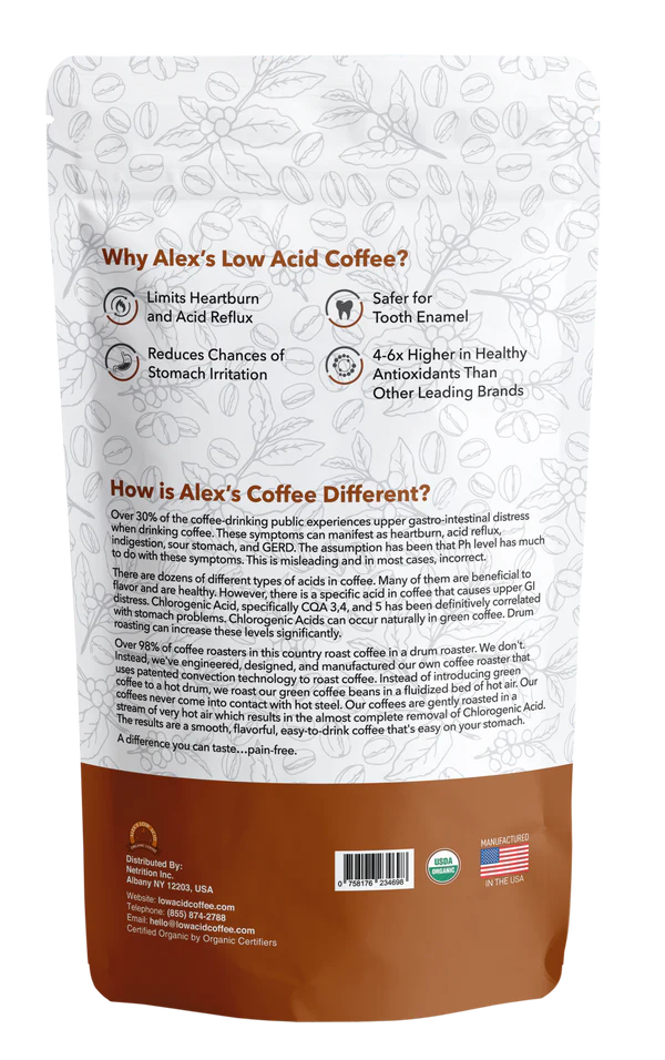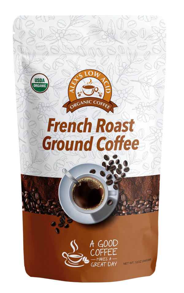 Alex’s Low Acid Organic Coffee French Roast Fresh Ground-12 oz.