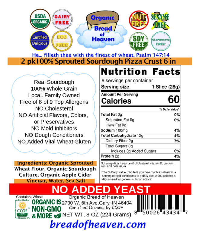 Use our new sprouted sourdough pizza crusts to make your pizza not only healthy, but delicious!! These are awesome, being made with Sprouted Wheat and REAL Sourdough to give you the choice of having healthy pizza again!! Our crusts are just the perfect thickness. They are just slightly thicker than a standard thin crust to give them just the right texture!! Order yours today, to have them baked fresh, just for you!!!