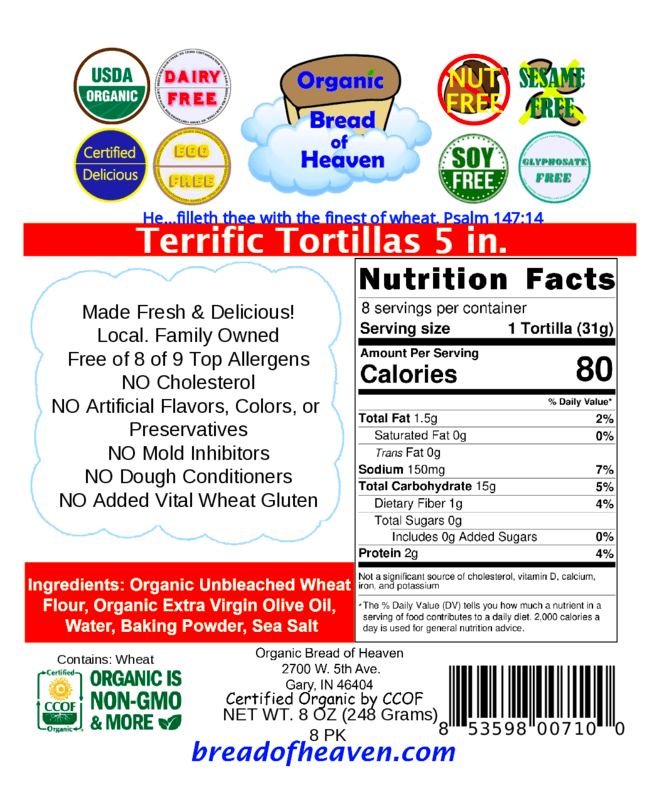 Ingredients: Organic Unbleached Wheat Flour, Organic Extra Virgin Olive Oil, Water, Baking Powder, Sea Salt