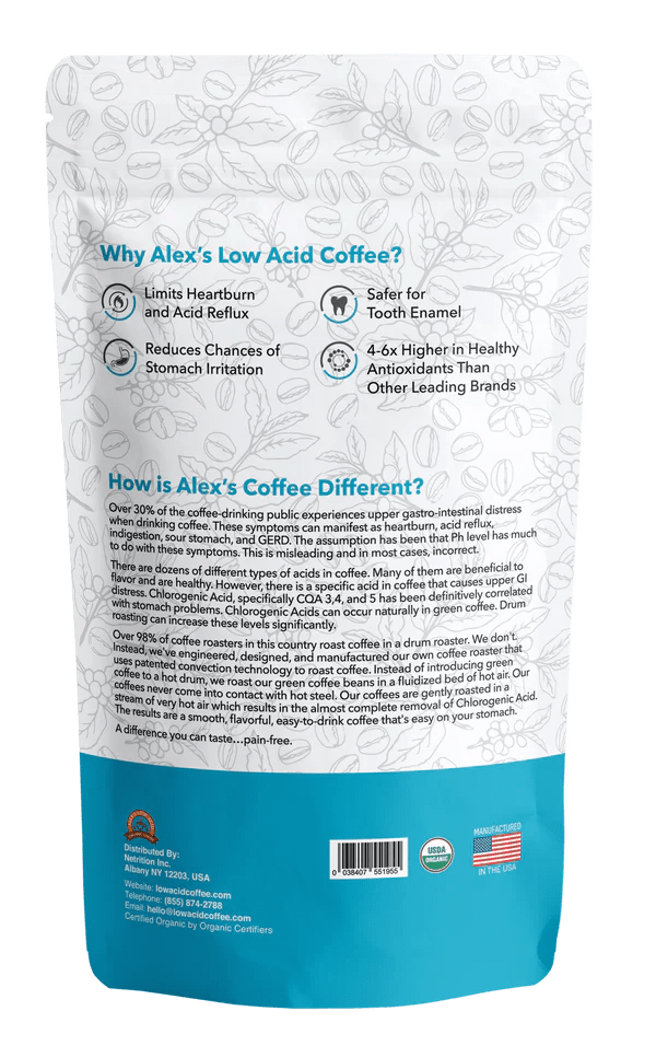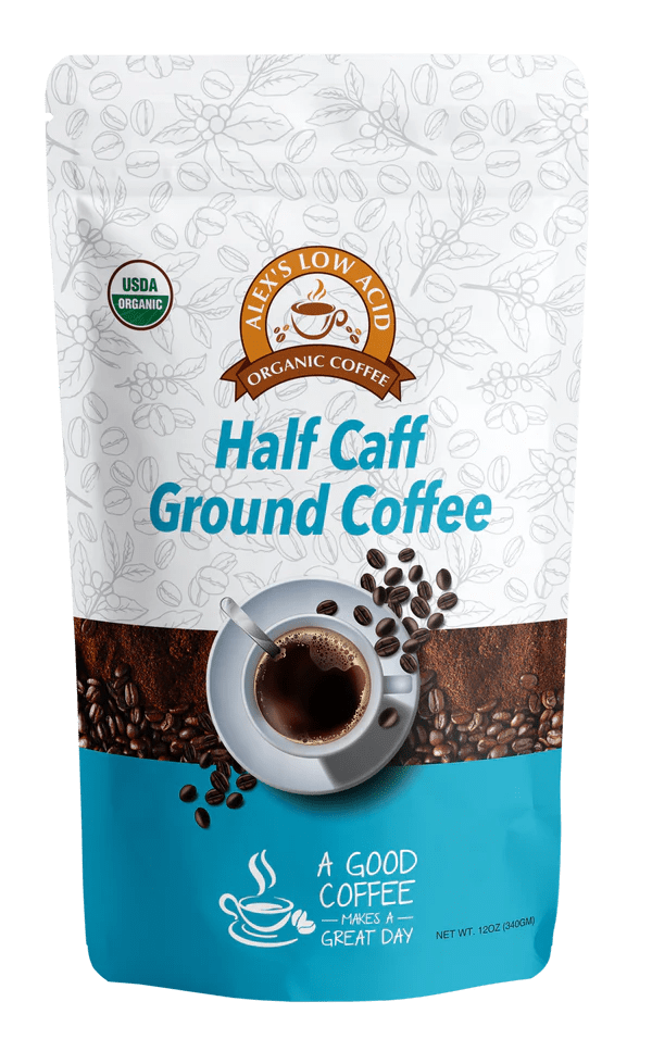 Alex’s Low Acid Organic Coffee Half Caff Fresh Ground-12 oz.