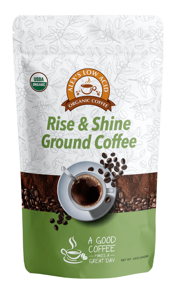 Alex’s Low Acid Organic Coffee Rise and Shine Fresh Ground-12 oz.